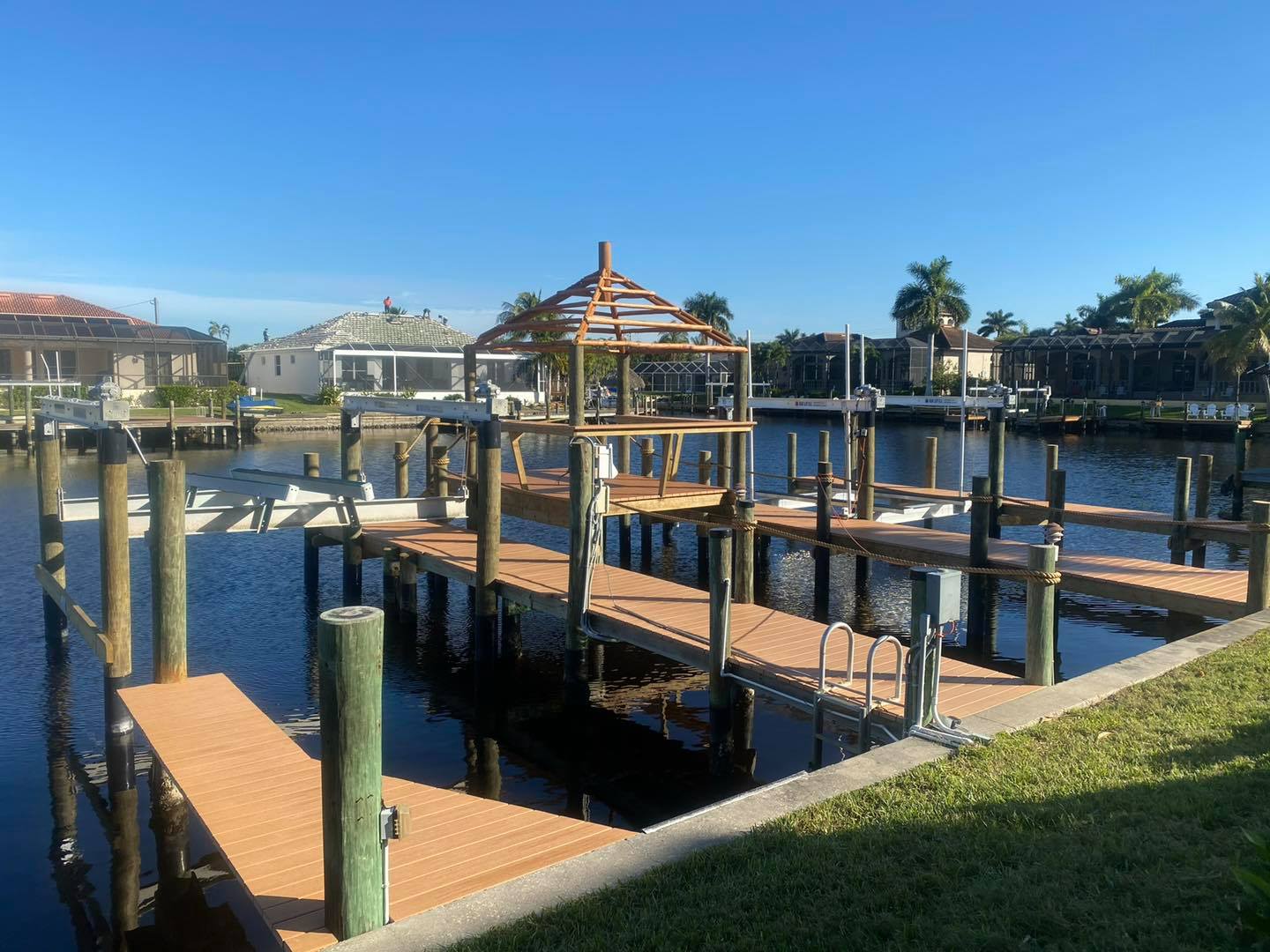 Hooker Marine enhances waterfront living with expertly crafted tiki huts, kayak walk-downs, jet-ski step-downs, and more. Our custom-built tiki huts provide the perfect shaded retreat, combining durability and tropical aesthetics for relaxation by the water. For kayak enthusiasts, our walk-downs offer easy and safe access to the water, making launching and docking effortless. We also specialize in docks, boat lifts, and shoreline enhancements, ensuring functionality and beauty for your waterfront property. Using high-quality materials and expert craftsmanship, Hooker Marine delivers long-lasting structures that withstand the elements. Whether you’re looking to upgrade your outdoor space or improve water access, our team provides professional, reliable solutions. Contact us today!